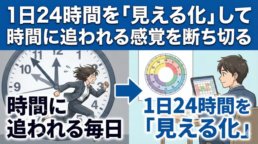 - 1日24時間を「見える化」して時間に追われる感覚を断ち切る
