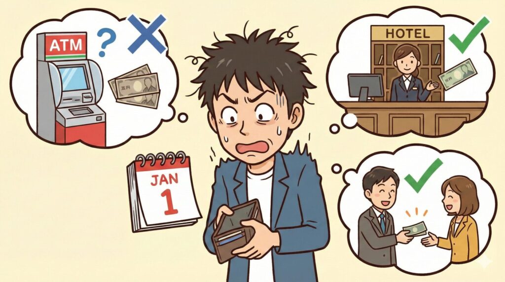実はこれ、僕も数年前にやらかしました。仕事納めのバタバタで銀行に行くのをすっかり忘れ、手元にあるのはクタッとした野口英世と樋口一葉だけ。妻には「え、用意してないの?」と白い目で見られ、もう生きた心地がしませんでした。
