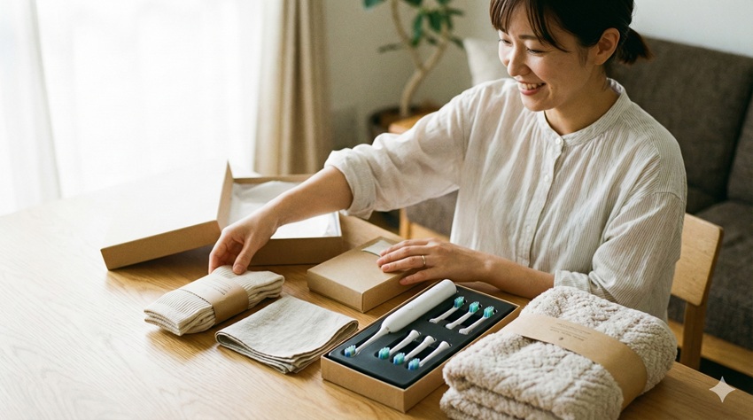もう少しひねりを効かせるなら、「高機能歯ブラシ」や「高級フェイスタオル」もアリです。