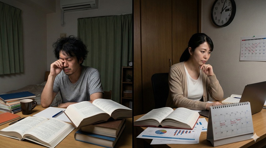 心理学には「エメットの法則(仕事を先延ばしにすることは、片付けることより2倍のエネルギーを消費する)」というものがありますが、合格者は迷う時間を勉強に充てるか、あるいは「寝る」という決断を下します。無理に全部をやろうとせず、合格最低点を確実に狙う。「満点」ではなく「合格点」を目指すリアリストこそが、30代の独学勝者です。