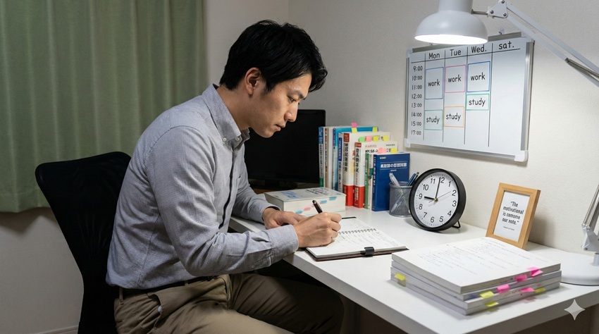 仕事と勉強を両立させるタイムマネジメントの極意では、机に向かう時間だけが勉強ではないという、ライター的な発想をお伝えします。独学者が選ぶべき参考書と問題集の正しい回転法についても、浮気せず「一冊を信じ抜く」重要性を深掘りします。そして、モチベーション維持のために必要なマインドセット。孤独な戦いの中で、どうやって自分を鼓舞し続けるのか。その心理的なトリックをご紹介します。