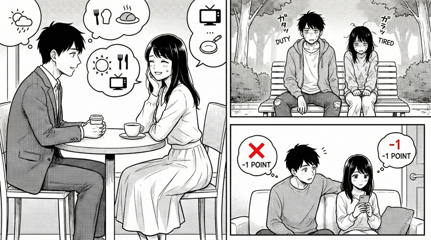 妥協で付き合うカップルの特徴は、デートがまるで毎週月曜日のゴミ出しのように、淡々と、しかし少し面倒くさいタスクのように感じられてしまうことにあります。