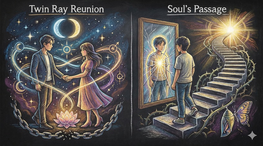 - 魂の片割れであるツインレイとの宿命的な再会
