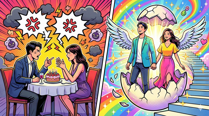 これは、宇宙があなたに「新しいステージに進む準備はできている?」「今の関係性をこのまま続ける?それとも進化させる?」と問いかけているサインです。誕生日の喧嘩は、まさにその試験会場。心理学の「ピグマリオン効果(他者の期待によって結果が変わる現象)」を逆手に取れば、宇宙はあなたならこの壁を乗り越えられると信じているからこそ、この課題を提示しているのです。