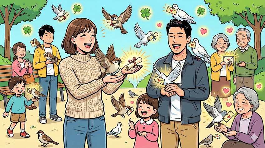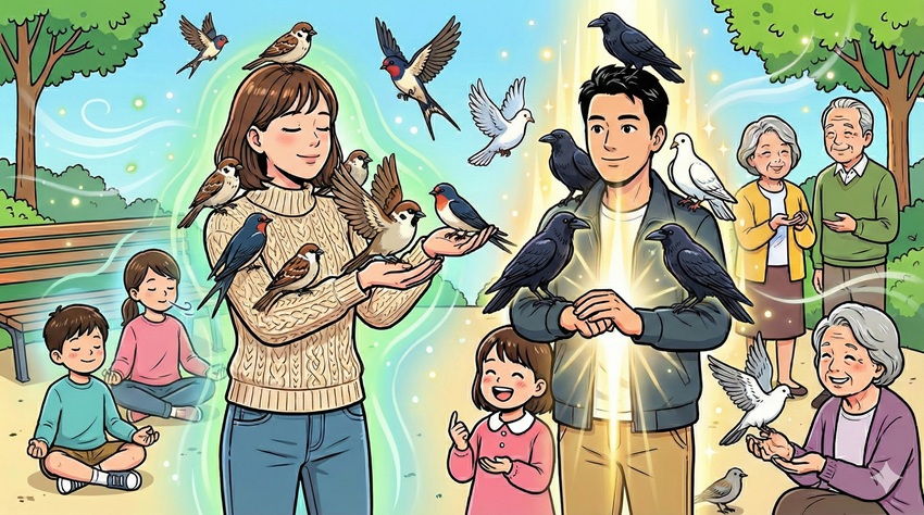 鳥が寄ってくる人が受け取っている幸運のメッセージ