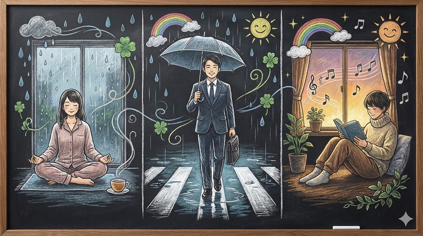 「今日は雨だから、これができる!」という前向きな捉え方は、あらゆる困難を乗り越えるための最強のライフハックになります。