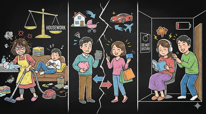言葉にできない「家事の負担感」、将来を考えたときに不安になる「お金のルール」、そして最も見落とされがちな「自分自身の時間の消失」です。