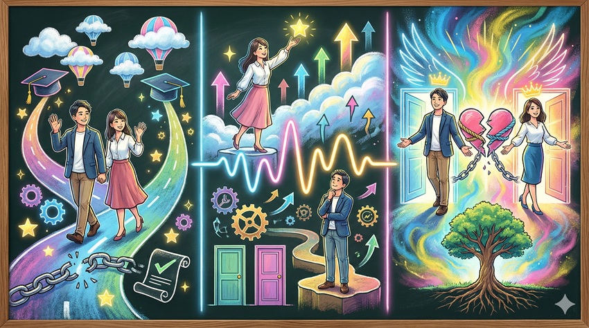 例えば、あなたが「自分を愛すること」が課題だった場合、ソウルメイトはあなたを徹底的に愛してくれたり、逆に突き放すことで自愛を促したりします。その学びが終われば、次の教室(ステージ)へ移るために、必然的にクラスメート(ソウルメイト)との離別が訪れるのです。これは心理学でいう「自己実現のプロセス」において、古い環境から脱皮する段階と重なります。