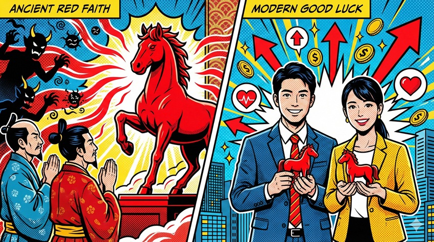 • 赤い馬が「病魔を退ける」と言われる魔除け信仰の歴史的根拠