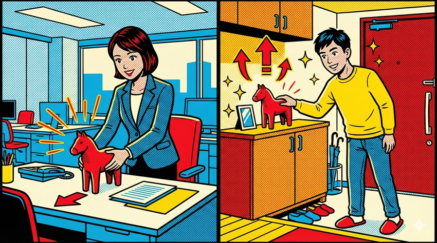 玄関はディフェンス、デスクはオフェンス。赤い馬の向きを変えるだけで、あなたの日常の攻守は完璧に整います。