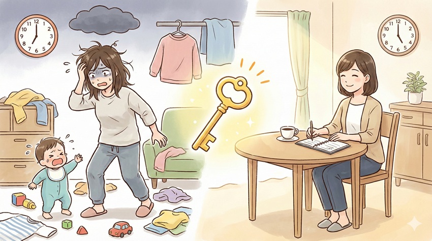 さらに「認知的不協和(理想と現実にギャップがあり不快感を感じる状態)」も追い打ちをかけます。本当はもっと子供と笑って過ごしたい、でも現実は家事に追われてイライラ。この心の葛藤が、目に見えない形であなたの時間を、そして何より「心の余裕」を奪っていくんです。