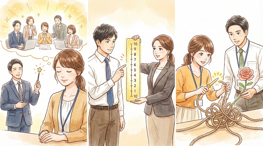 実は、ここだけの話ですが、研修を導入した企業の多くから聞かれるのは「会議の時間が短くなった」という意外な声です。 原因探しに時間を溶かしていた会議が、具体的な解決策を決める場へと進化するからです。 これは心理学の「社会的証明」が働き、ポジティブな言動が周囲に伝播していくことで起こります。 一人、また一人と解決志向の「問いかけ」を使い始めることで、組織全体のコミュニケーションコストが下がり、生産性が向上していく。 この章では、導入によって得られる具体的なメリットを3つの視点から詳しく見ていきましょう。 「理屈じゃないんですよね、こういうのは。現場の顔つきが変わるんです」と仰った人事部長の言葉が、今でも耳に残っています。