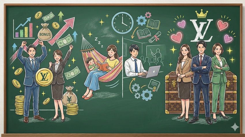 心理学では「リフレッシュ効果」が仕事の質を高めることが証明されていますが、ルイ・ヴィトンでも、長期休暇の取得や時短勤務の活用が推奨されています。これは「社員自身が豊かな人生を送っていなければ、顧客に豊かな提案はできない」という考え方が根底にあるからです。