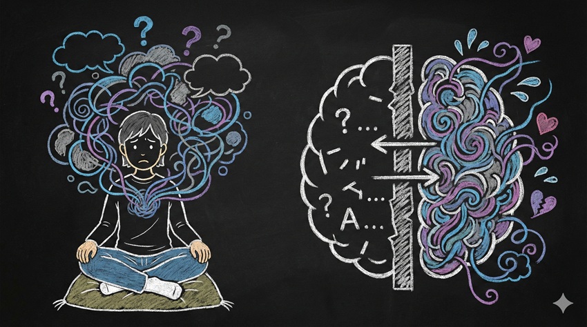 うーん、これはどう説明したらいいか……。実は、私たちの脳の中では、右脳(感情や直感)と左脳(論理や言語)が常に情報のやり取りをしています。悩みを言語化できない状態というのは、この二つを繋ぐブリッジが渋滞を起こしているようなものなんです。