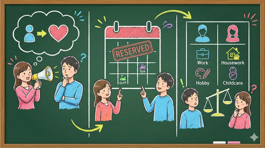 原因が整理できたら、次は現状を変えるための「作戦会議」が必要です。 「旦那 遊びに行く イライラ」をぶつけるだけでは、旦那さんは「また怒ってるよ……」と耳を塞ぐだけで、根本的な解決には至りません。 大切なのは、感情の爆発を「建設的な交渉」へと昇華させることです。