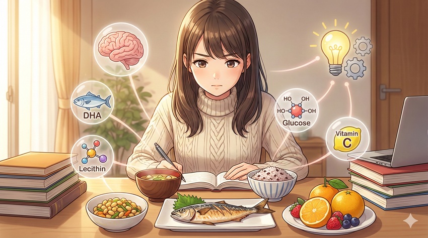 脳を効率よく働かせるためには、特定の栄養素を意識的に取り入れることが重要です。この章では、記憶力を高めるための「ブレインフード」や、集中力を維持するためのエネルギー源、そしてプレッシャーに負けない体を作るためのビタミンについて詳しく解説します。