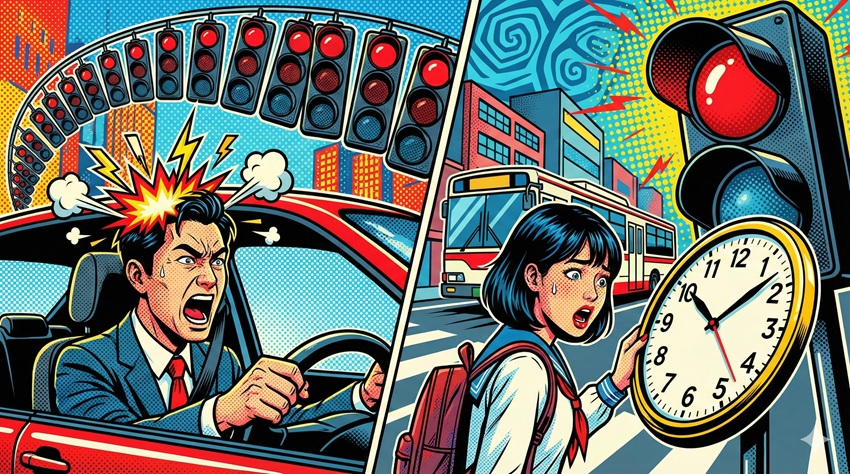 信号に引っかかるイライラは、交通工学的な仕組みと、私たちの脳のバイアスが複雑に絡み合って生まれるものです。