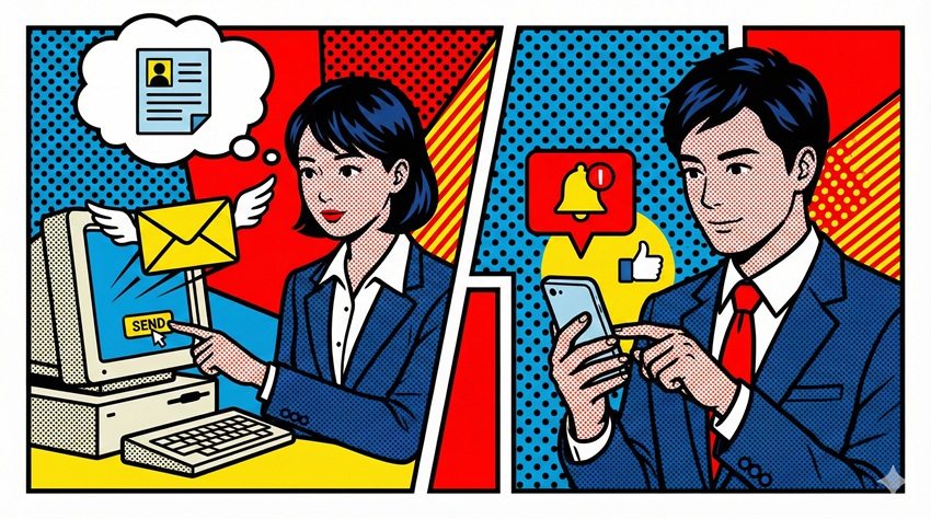 採用担当者のデスクを想像してみてください。1日に数百通もの応募通知や問い合わせメールが届く中で、彼らは一通につきわずか数秒で「会うべきか、見送るべきか」を判断しています。