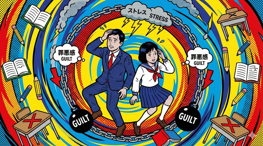 - 自分を責める罪悪感がさらなるストレスを生み学習効率を下げる負のループ
