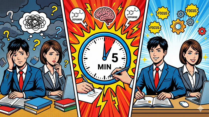 - 5分で「作業興奮」を引き出し、机に向かうためのスイッチ