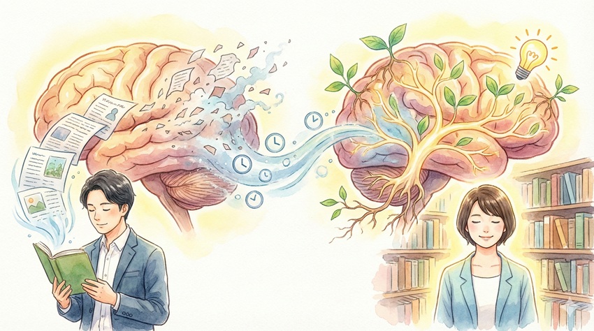 本を読み始める前のあなたと、今のあなた。もし、ニュースを見て感じる違和感や、仕事のアイデアの幅が少しでも広がっているなら、忘れた知識たちは水面下で完璧な仕事をこなしています。