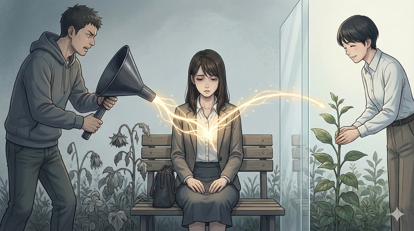 どんなに素晴らしい性格にも、光があれば影があります。 困っている人を助けることに一生懸命になりすぎるあまり、ふと気づくと自分自身のエネルギーが枯渇してしまい、何もしたくなくなってしまう……そんな経験はありませんか? これを心理学では、助ける側の燃え尽き症候群「ヘルパーズバーンアウト」と呼びます。 また、世の中にはあなたの優しさを都合よく利用しようとする人たちも存在します。 この章では、優しい性格の人が陥りがちな「罠」の正体と、そこから自分を守るための具体的な防御術について解説します。 「親切にする」ことと「自分を犠牲にする」ことは、似ているようで全く別のこと。 あなたの優しさが、あなた自身を苦しめる鎖にならないように、賢い「境界線」の引き方を一緒に学んでいきましょう。