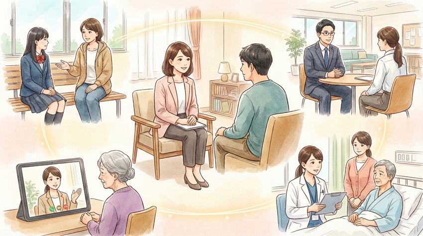 昔は「カウンセリング」といえば、病院や特別な相談室で行われる、少し敷居の高いものというイメージがありました。 でも、2025年現在は違います。 オンライン相談の普及やアプリの進化によって、相談に乗る仕事のスタイルは驚くほど多様化しました。 これは心理学でいう「ハロー効果(一つの特徴が全体の印象を決定づける心理)」がポジティブに働き、「気軽に相談すること=セルフケアができる知的な行動」という認知に変わってきたからかもしれませんね。