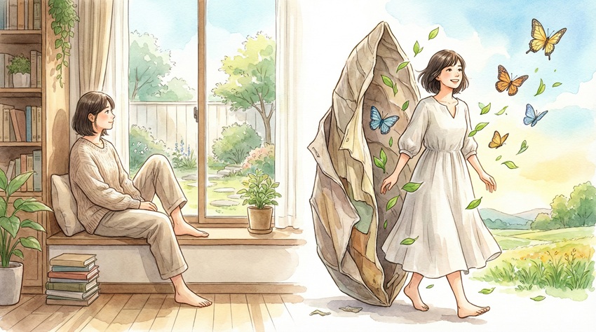 でも、今ならはっきり言えます。生きる意味を見失うという状態は、決してあなたが弱いからでも、人生が失敗したからでもありません。それは、これまで着ていた「自分という服」が今のあなたに合わなくなって、新しい自分に生まれ変わろうとしている「脱皮」のサインなんです。