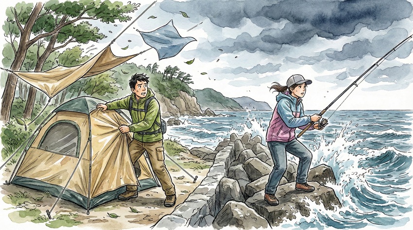 キャンプや釣りで風速10mどのくらい